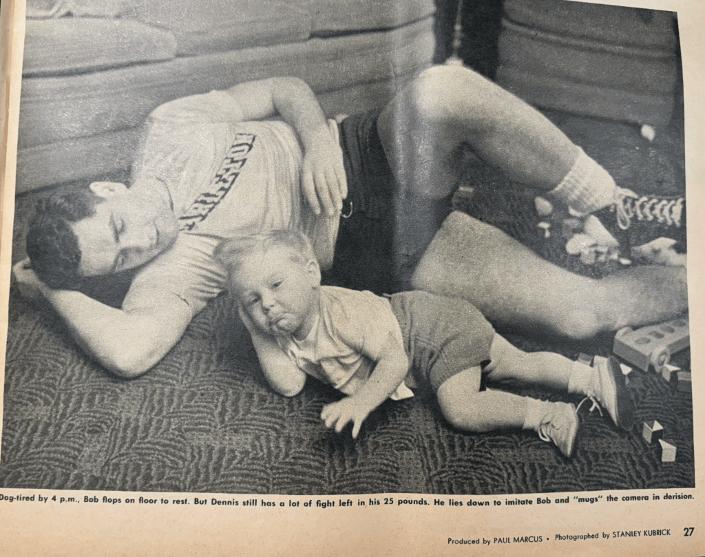 On a totally different note, the owner showed me a photo spread in Look magazine from March 1947. In the pictures, the owner is the baby. Bob is a Carleton college football player — the premise of the photo shoot was that Bob was going to do what a baby does all day, and he was exhausted! I thought that was cute. Anyway, look at the bottom corner of this photo and check out the photographer.