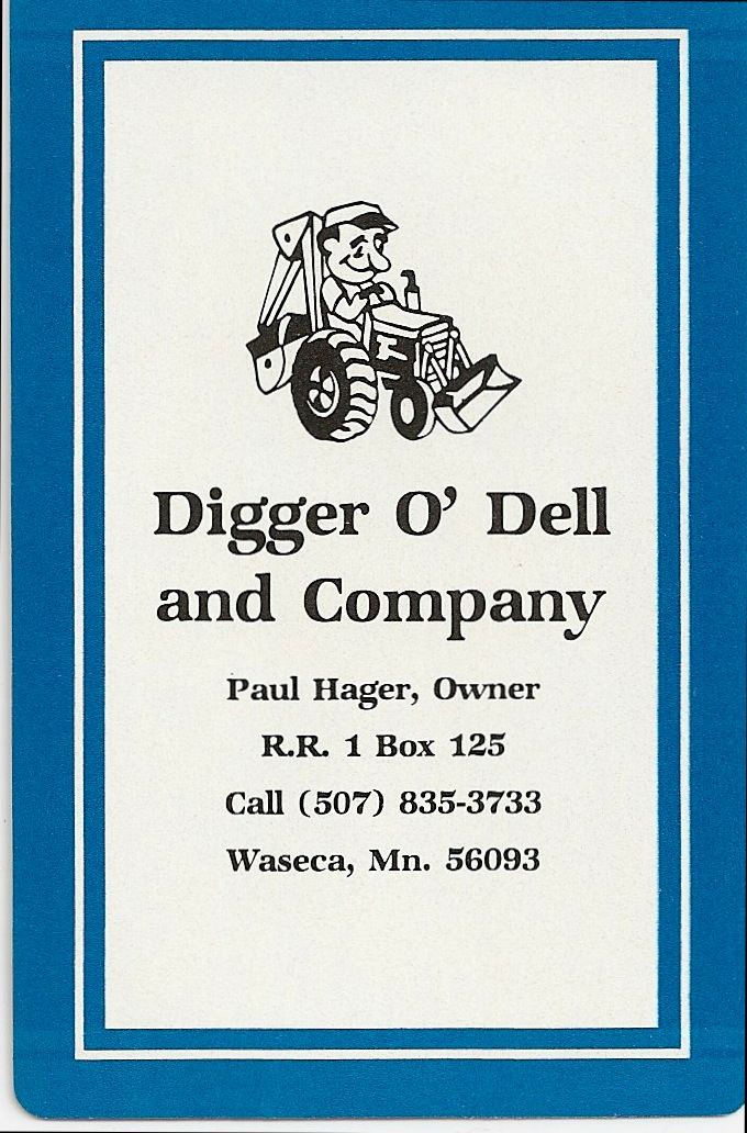 I like to think if Dad were still alive, he would have a website for his gravedigging much like the Leisingers, who run Bubba’s Digging out of Sioux Falls, S.D. Dad advertised his business through the means available to him in the 1980s–by printing his name and contact information on pens, notepads, mugs, hats, and playing cards. He handed these out to friends, family, neighbors, strangers.