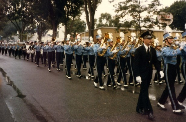 Mr. Dufault leading the Marching Jays in a parade. I’m not sure of the year, but it looks like it’s the Minnesota State Fair parade. That is the style of uniform I wore from 1990-1993, but I think this might be slightly earlier than that.