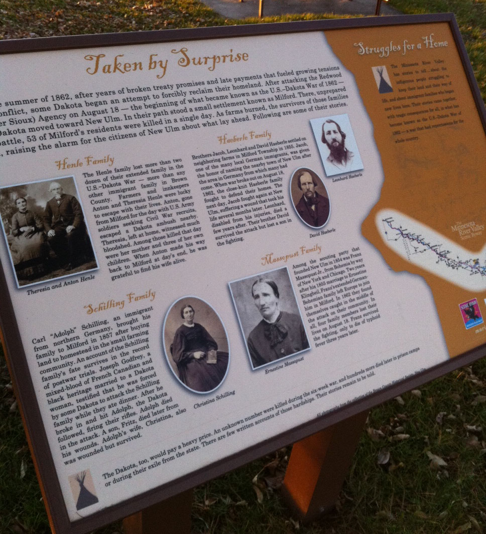 As this sign notes, the survivors fled to New Ulm to warn citizens there that the Dakota were on their way. If you want to know more about the war, check out this website.