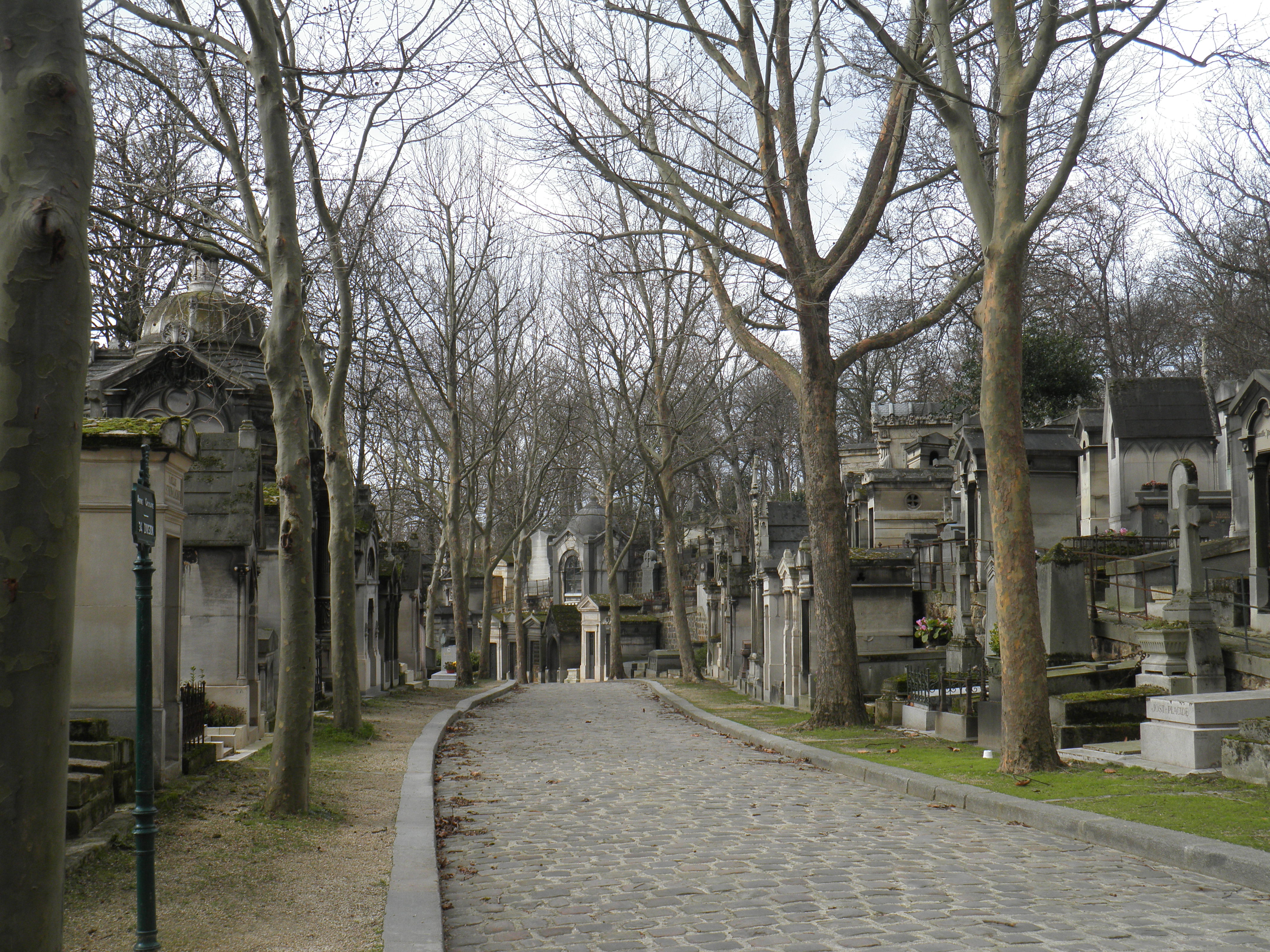 Père Lachaise, established in 1804, is the most famous cemetery in Paris, perhaps even Europe. It’s laid out in the “park” or “garden” layout that inspired cemetery design around the world (including Mount Auburn in Cambridge, Mass.).