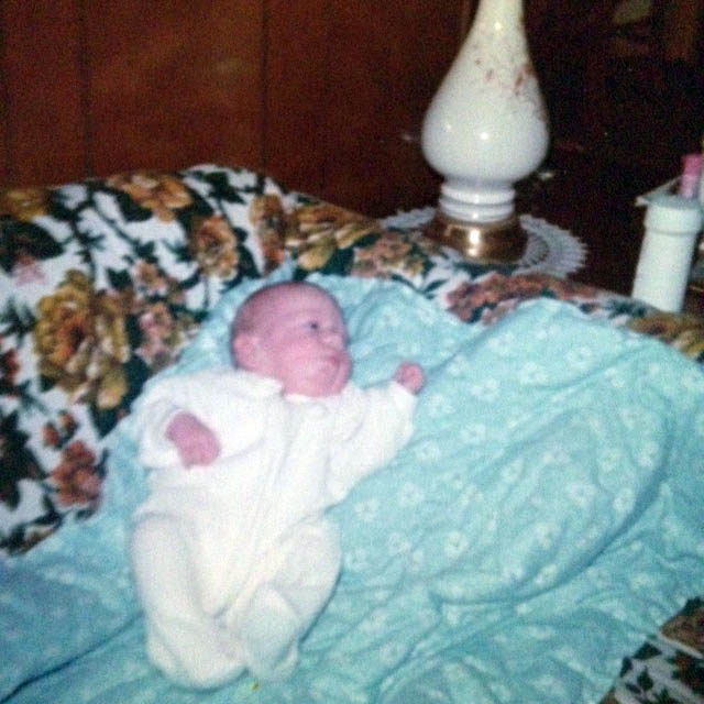 This is one of the first pictures taken of me. I can’t sit up or hold my head, so that would make me what? One or two months old?