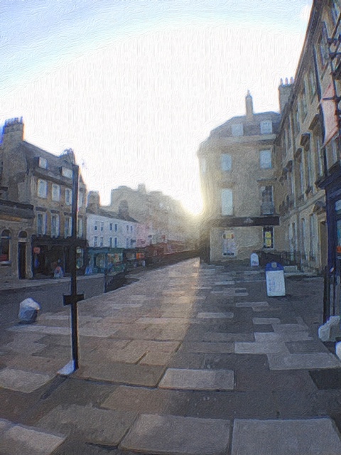 A street in Bath, England, where I’m currently staying to complete a residency period for my Ph.D. program. Photo illustration by author using the Brushstroke app.