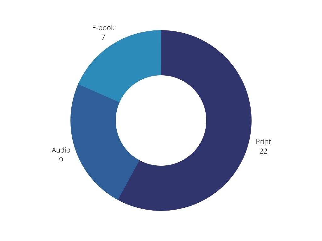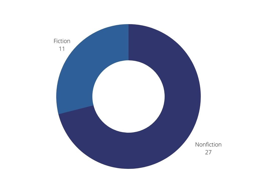 I ended up reading 38 books. Here’s how they broke down:
